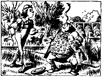 | ALICE'S ADVENTURES IN WONDERLANDLewis CarrollDrawings by John TennielCHAPTER 5Advice from a Caterpillar  The Caterpillar and Alice looked at each other for some time in silence: at last the Caterpillar took the hookah out of its mouth, and addressed her in a languid, sleepy voice. 'Who are you?' said the Caterpillar. This was not an encouraging opening for a conversation. Alice replied, rather shyly, 'II hardly know, sir, just at present at least I know who I was when I got up this morning, but I think I must have been changed several times since then.' 'What do you mean by that?' said the Caterpillar sternly. 'Explain yourself!' 'I can't explain myself, I'm afraid, sir' said Alice, 'because I'm not myself, you see.' 'I don't see,' said the Caterpillar. 'I'm afraid I can't put it more clearly,' Alice replied very politely, 'for I can't understand it myself to begin with; and being so many different sizes in a day is very confusing.' 'It isn't,' said the Caterpillar. 'Well, perhaps you haven't found it so yet,' said Alice; 'but when you have to turn into a chrysalis--you will some day, you knowand then after that into a butterfly, I should think you'll feel it a little queer, won't you?' 'Not a bit,' said the Caterpillar. 'Well, perhaps your feelings may be different,' said Alice; 'all I know is, it would feel very queer to me.' 'You!' said the Caterpillar contemptuously. 'Who are you?' Which brought them back again to the beginning of the conversation. Alice felt a little irritated at the Caterpillar's making such very short remarks, and she drew herself up and said, very gravely, 'I think, you ought to tell me who you are, first.' 'Why?' said the Caterpillar. Here was another puzzling question; and as Alice could not think of any good reason, and as the Caterpillar seemed to be in a very unpleasant state of mind, she turned away. 'Come back!' the Caterpillar called after her. 'I've something important to say!' This sounded promising, certainly: Alice turned and came back again. 'Keep your temper,' said the Caterpillar. 'Is that all?' said Alice, swallowing down her anger as well as she could. 'No,' said the Caterpillar. Alice thought she might as well wait, as she had nothing else to do, and perhaps after all it might tell her something worth hearing. For some minutes it puffed away without speaking, but at last it unfolded its arms, took the hookah out of its mouth again, and said, 'So you think you're changed, do you?' 'I'm afraid I am, sir,' said Alice; 'I can't remember things as I usedand I don't keep the same size for ten minutes together!' 'Can't remember what things?' said the Caterpillar. 'Well, I've tried to say "How doth the little busy bee," but it all came different!' Alice replied in a very melancholy voice. 'Repeat, "You are old, Father William,"' said the Caterpillar. Alice folded her hands, and began: 'You are old, Father William,' the young man said,  'In my youth,' Father William replied to his son,